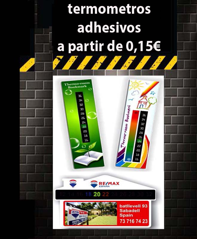 COMPRA TERMOMETROS DE CALIDAD.ALEMANA PARA CONTROL ENERGETICO Los servimos en tiras de termometros adhesivos para calendarios, tarjetas, reglas, imanes, puntos de libro, adhesivos, vino, coches , ordenadores. Distribuimos La maxima calidad al mejor precio de España. Contacta con nosotros y te daremos asesoramiento del modelo mas adecuado para el trabajo grafico que tengas que hacer. La publicidad mas economica y duradera del mercado, que se consulta diariamente, varias veces al dia.Para ahorrar en energia. Servicio Rapido ya que tenemos un amplio stok . Crea tu producto exclusivo para ofrecer a tus clientes como puede ser: Termometros calendarios plastico - Termometros calendarios coche - Termometros reglas pvc - Termometros reglas plastico - termometros almanaques pvc - calendarios con termometros - almanaques carton con termometros adhesivos - termometros almanaques - almanaques con termometros adhesivos - suministros impresion digital